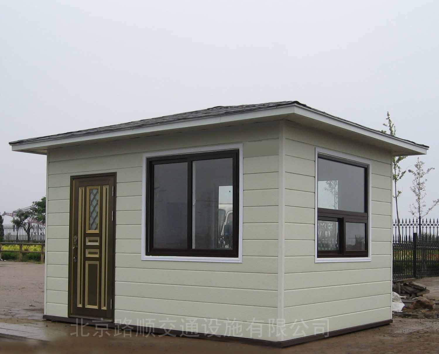 2、外装饰:采用金属雕花保温阻燃板作为外墙装饰板(颜色、花纹可选);顶子檐口天沟及下水道为新型塑化